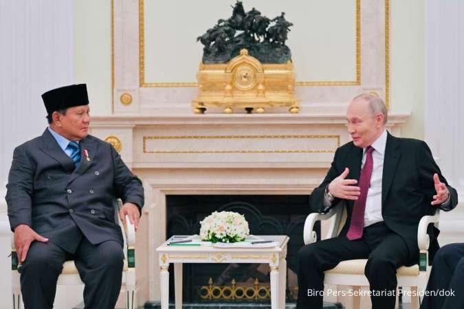 Sesaat sebelum pembicaraan resmi dimulai, Presiden Putin menyambut Presiden Prabowo dengan jabat tangan hangat.